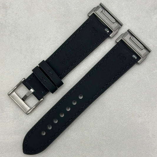 The Athens: Jet Black Full Grain Leather Garmin QuickFit Watch Strap