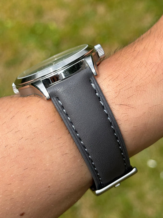 The Athens: Slate Grey Full Grain Leather Watch Strap