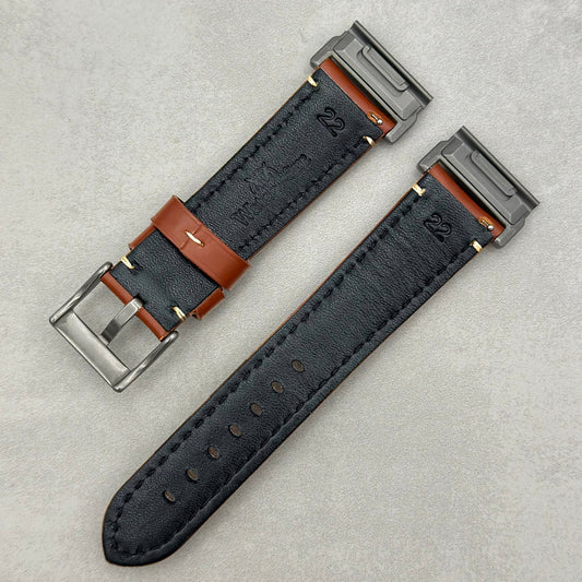 The Oslo: Caramel Brown Full Grain Leather Garmin QuickFit Watch Strap