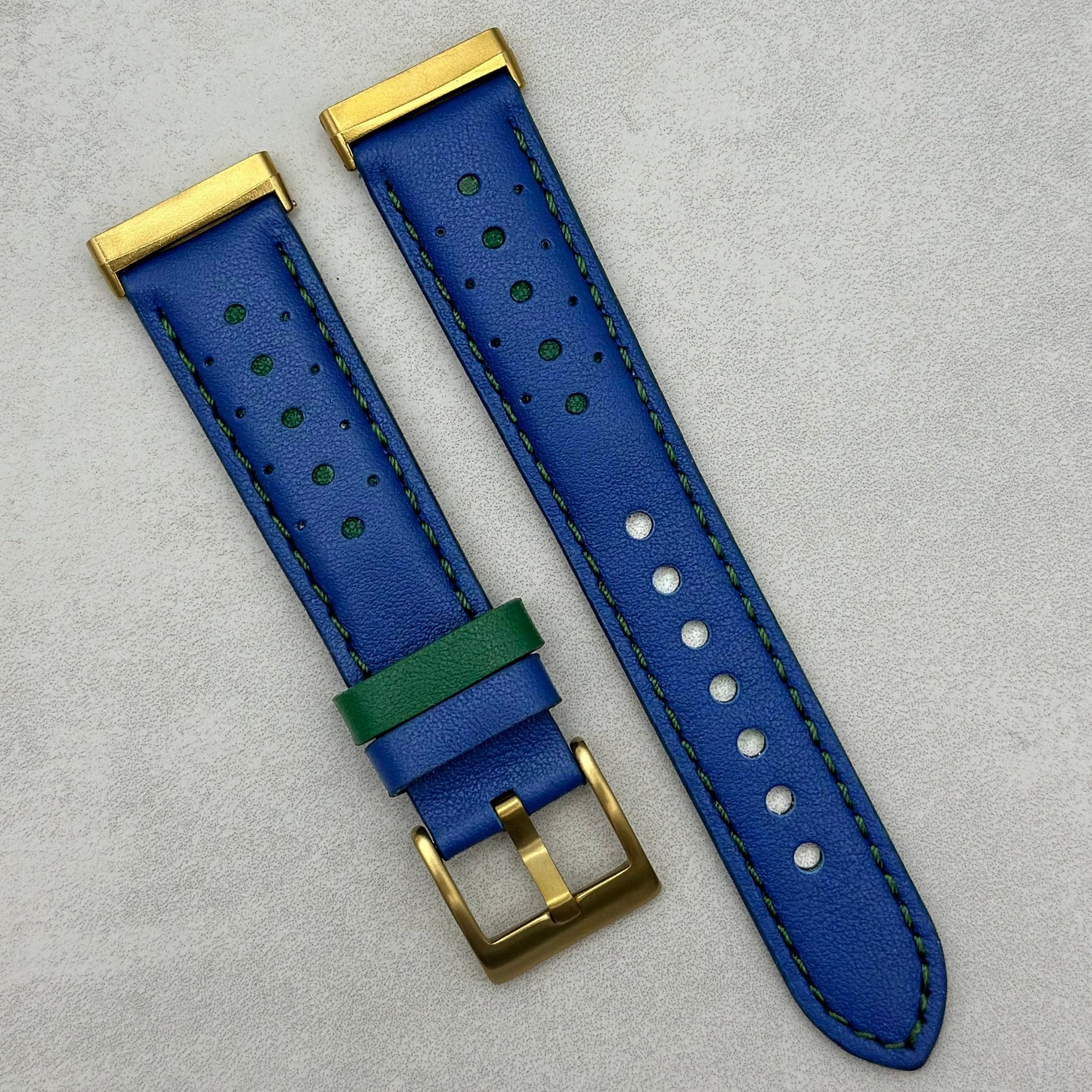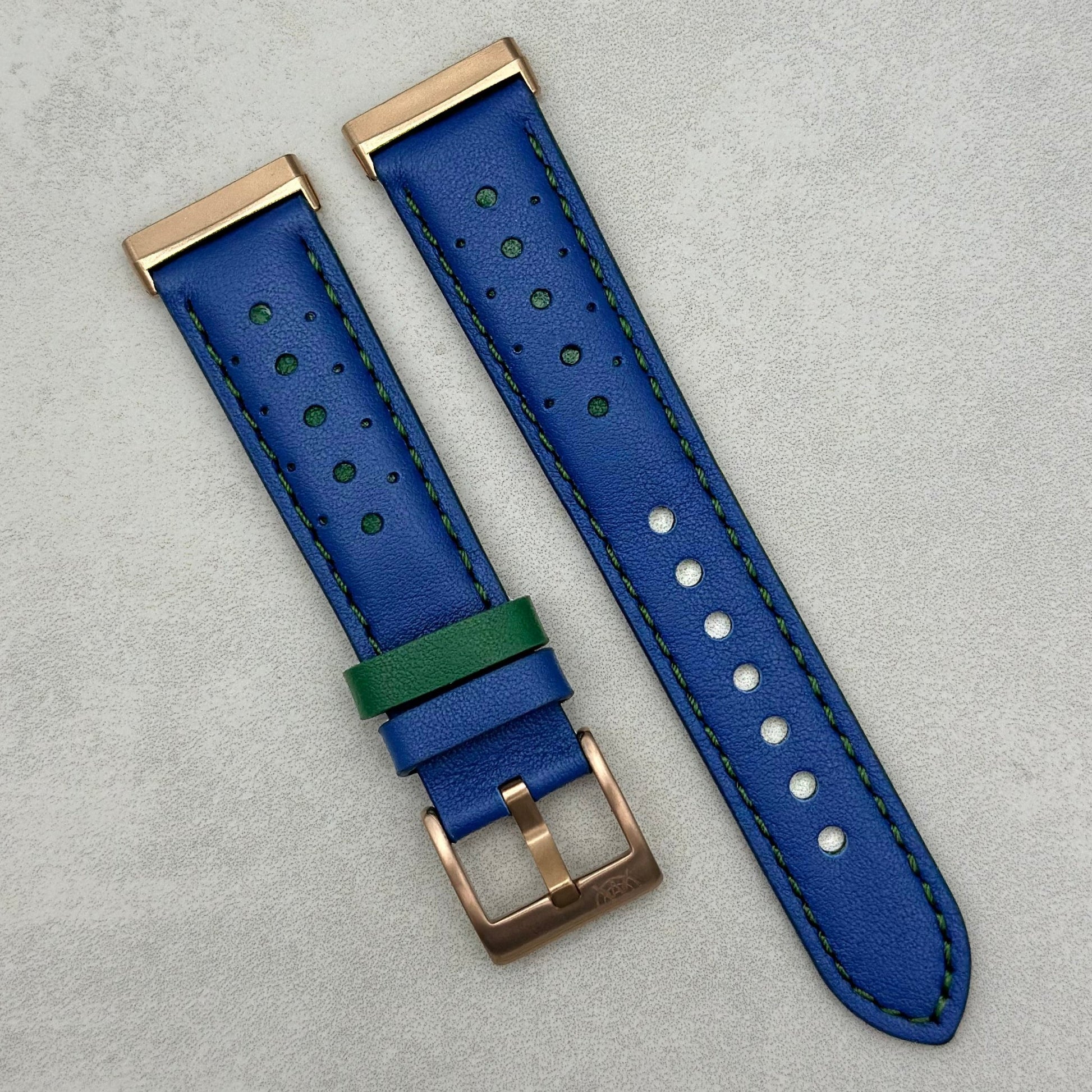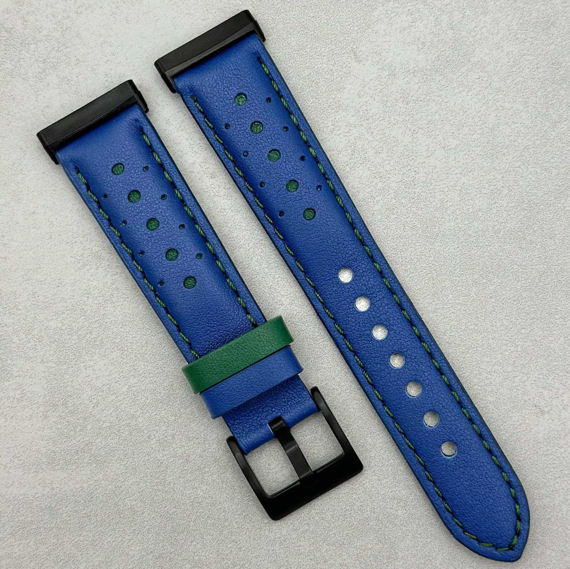 Le Mans: Cobalt Blue And Green Leather Racing Fitbit Versa/Sense Strap