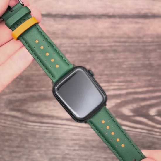 Le Mans: Green and Orange Leather Racing Apple Watch Strap