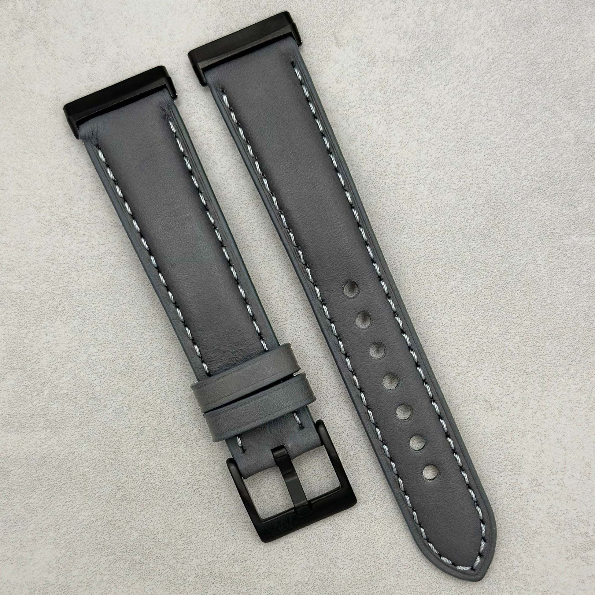 The Athens: Slate Grey Full Grain Leather Fitbit Versa/Sense Watch Strap