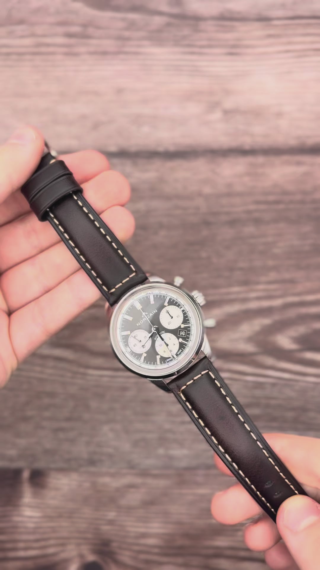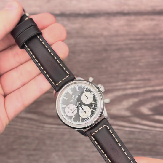 Dark brown in appearance with a striking chocolate brown streak which is exposed when the leather is stretched. This gives the strap a vintage appeal with a modern flair, subtle colour with striking undertones. Perfect for any watch.