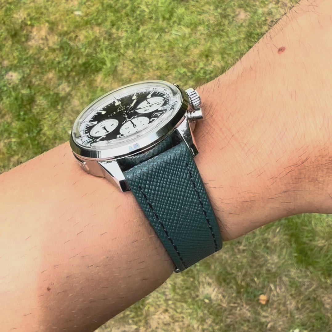 Picture this, the dawn is breaking, an elegant Italian supercar speeds through the picturesque valleys and vineyards of Tuscany. The driver looks down at their prized timepiece sensationally paired with the finest dark teal Saffiano leather watch strap. We cannot bring the valleys and vineyards to you but we can bring to you The Florence Collection made from the finest Saffiano leather in colours that will make you smile
