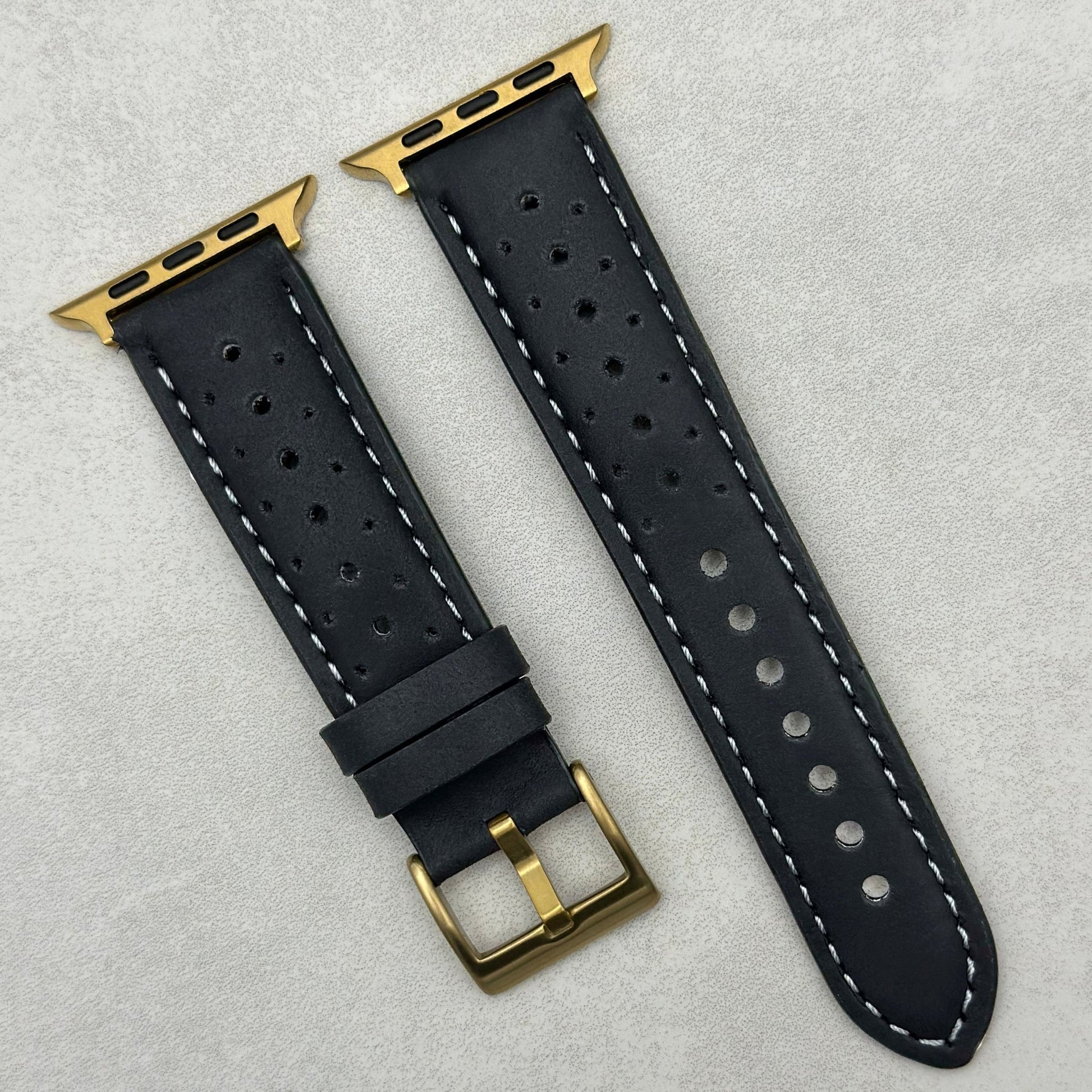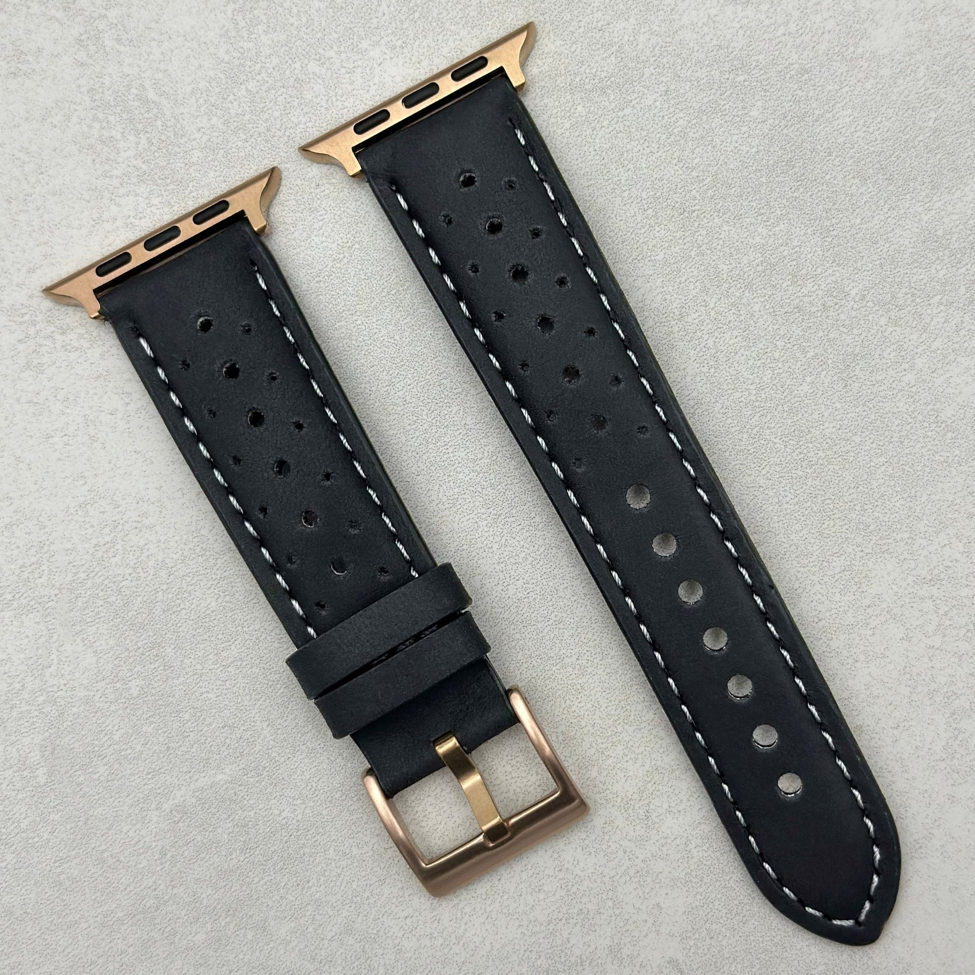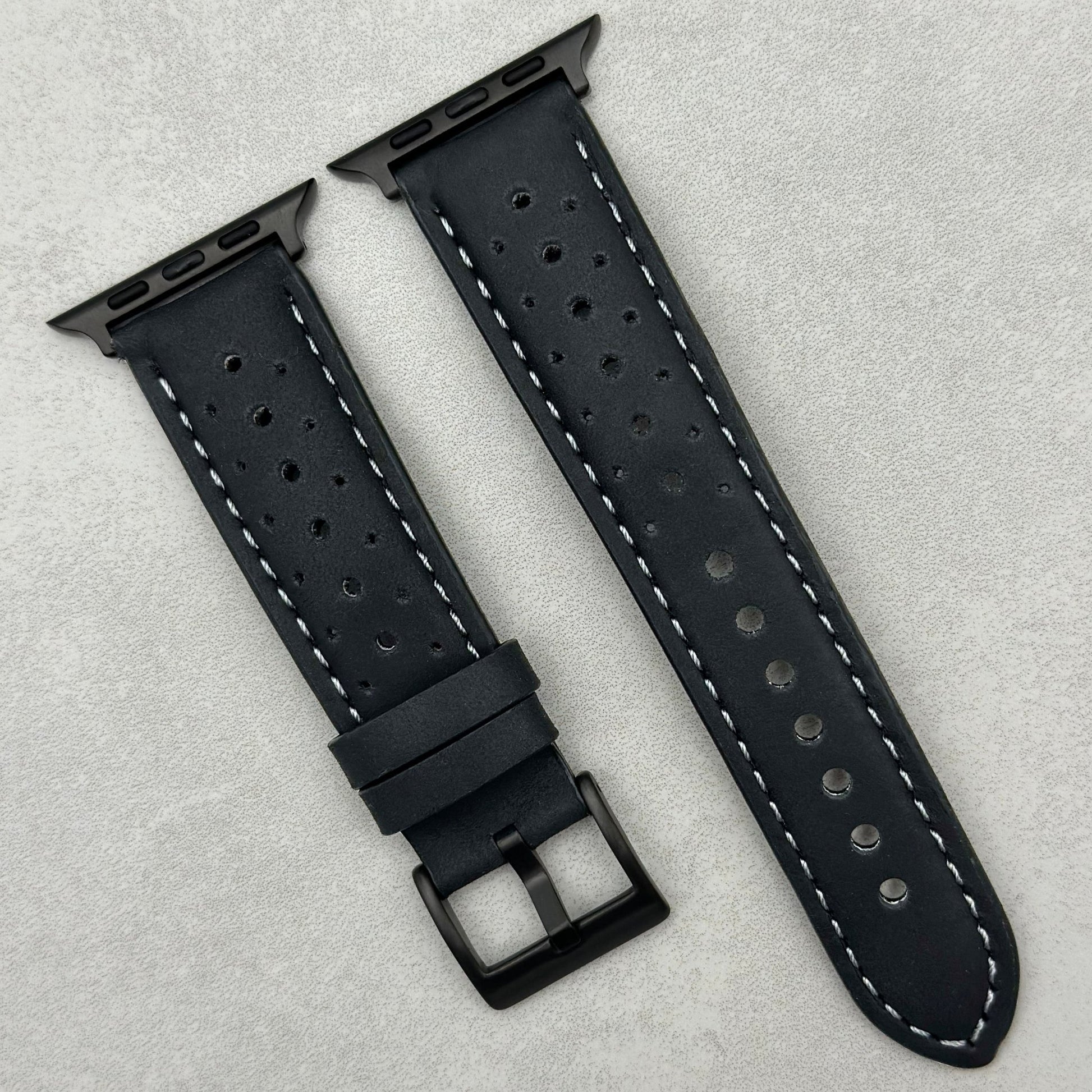 The Monte Carlo: Jet Black Perforated Leather Apple Watch Strap