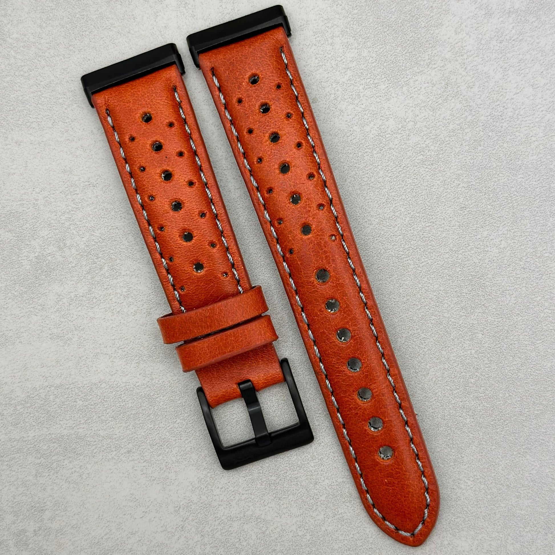 The Monte Carlo: Russet Orange Perforated Leather Fitbit Versa/Sense Watch Strap