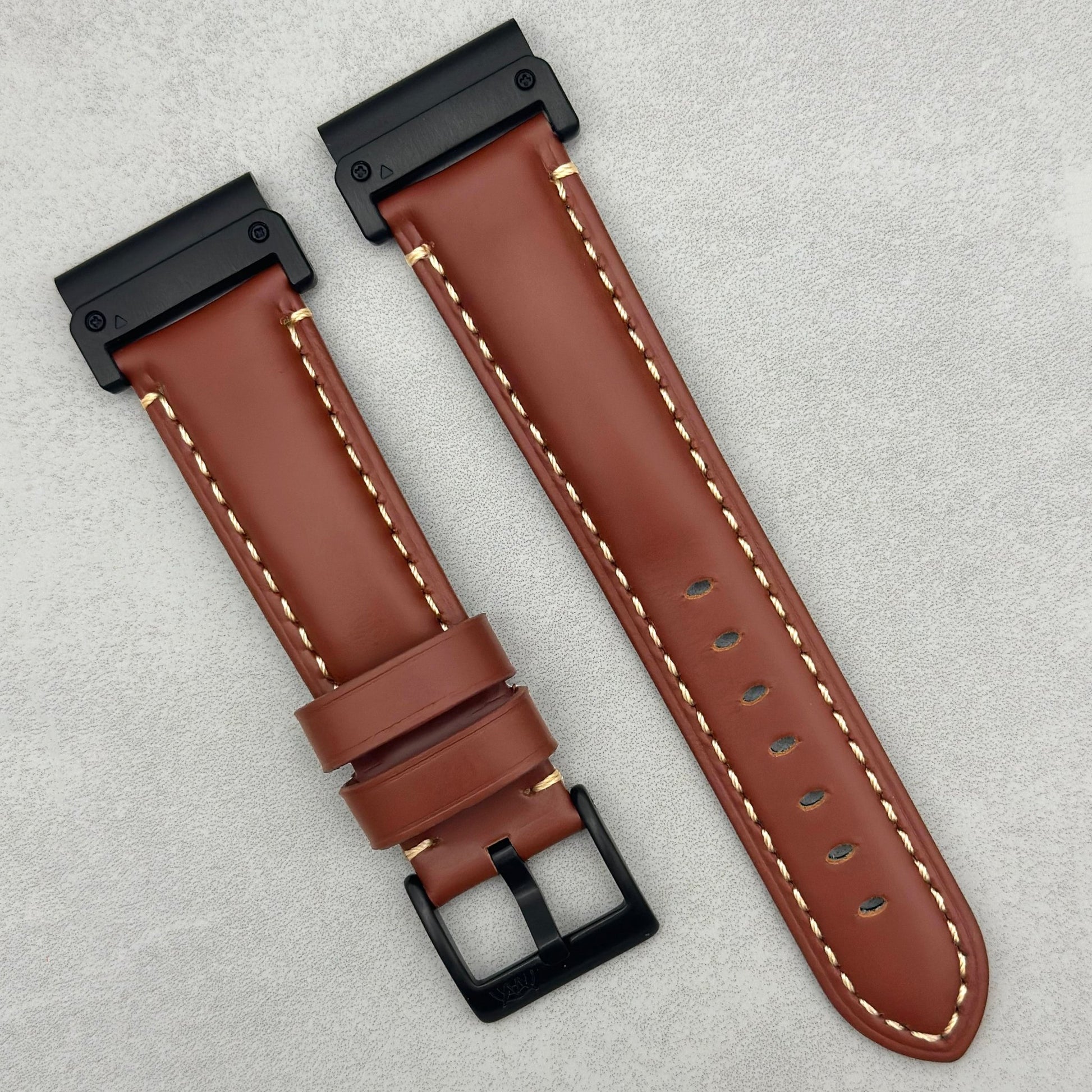 The Oslo: Caramel Brown Full Grain Leather Garmin QuickFit Watch Strap