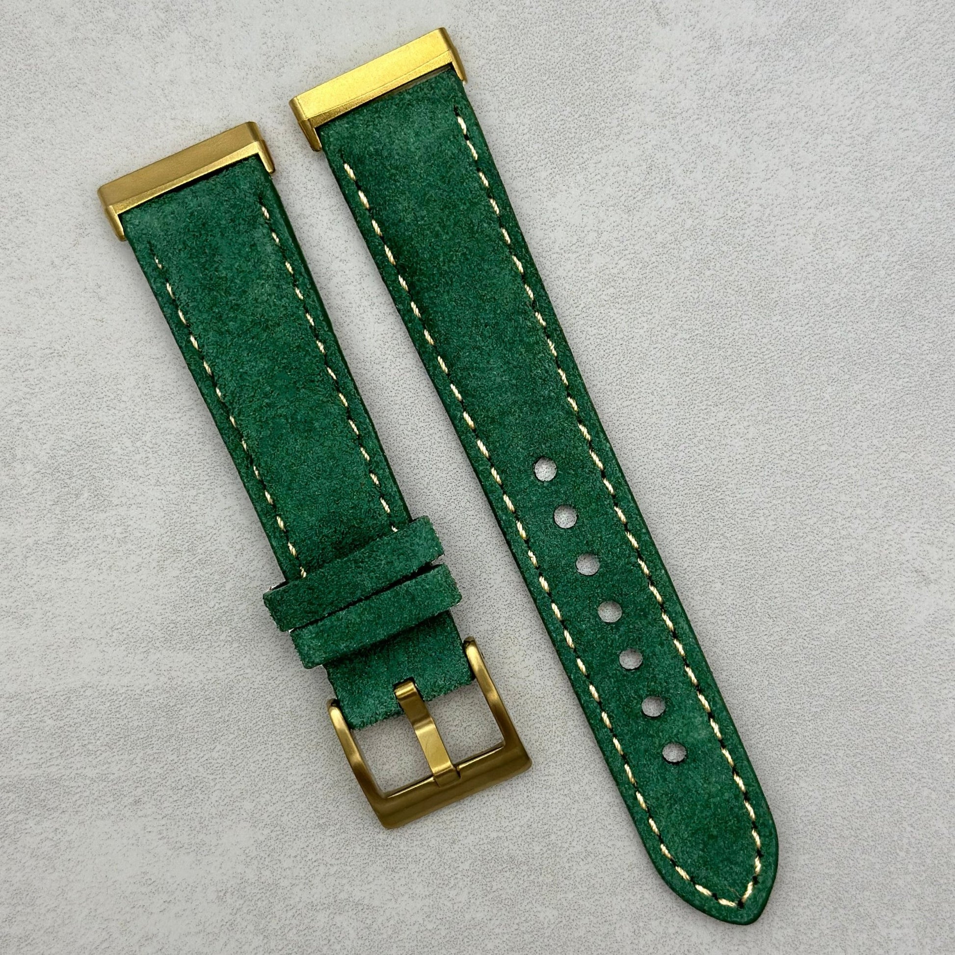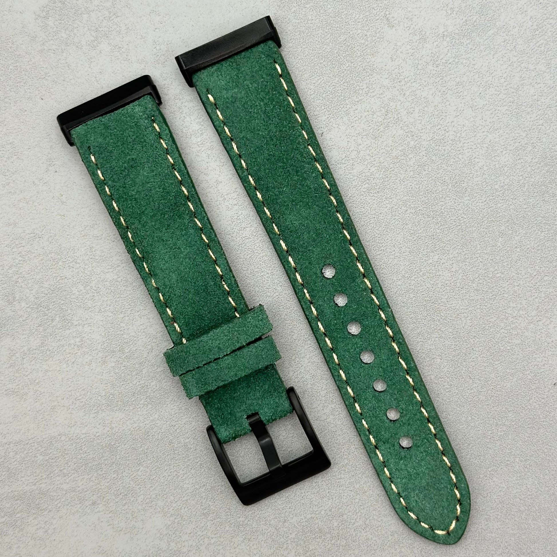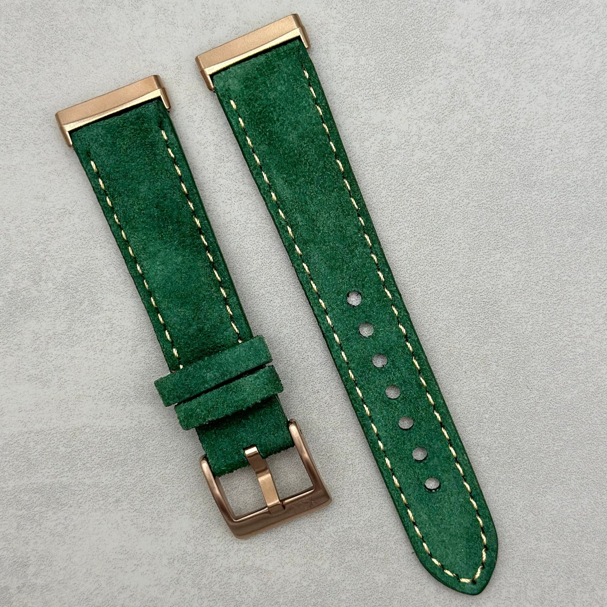 The Paris: Hunter Green Padded Suede Fitbit Versa/Sense Watch Strap
