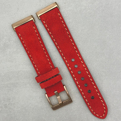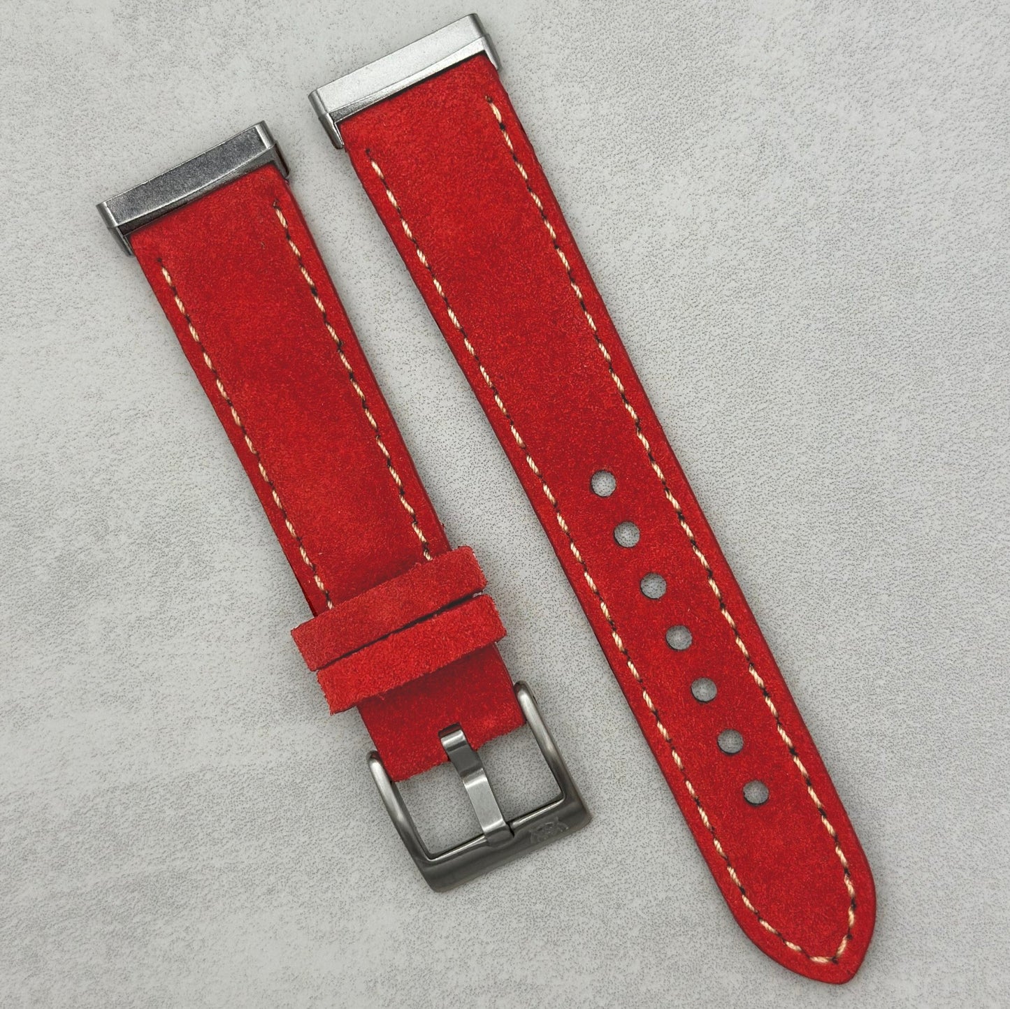 The Paris: Ruby Red Padded Suede Fitbit Versa/Sense Watch Strap