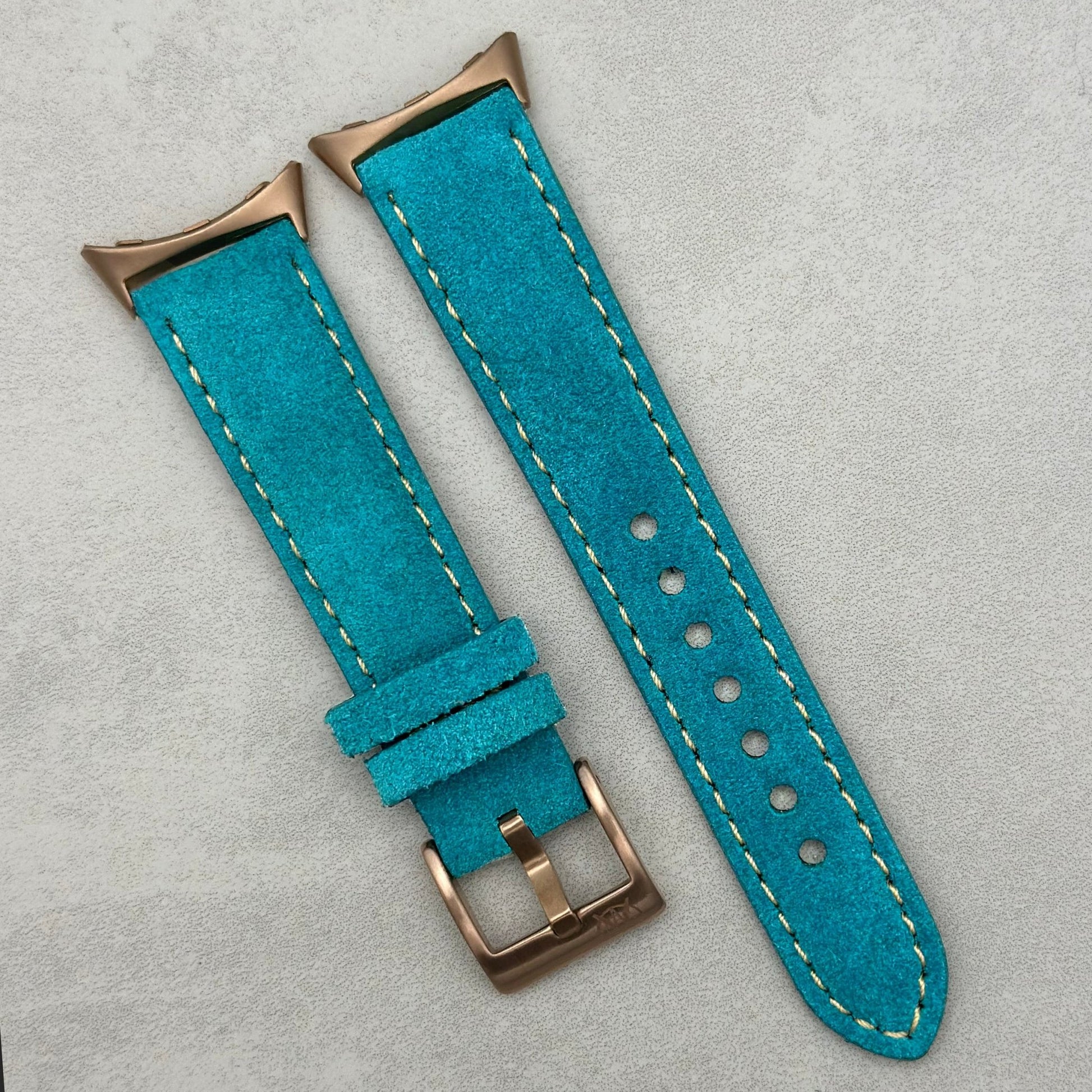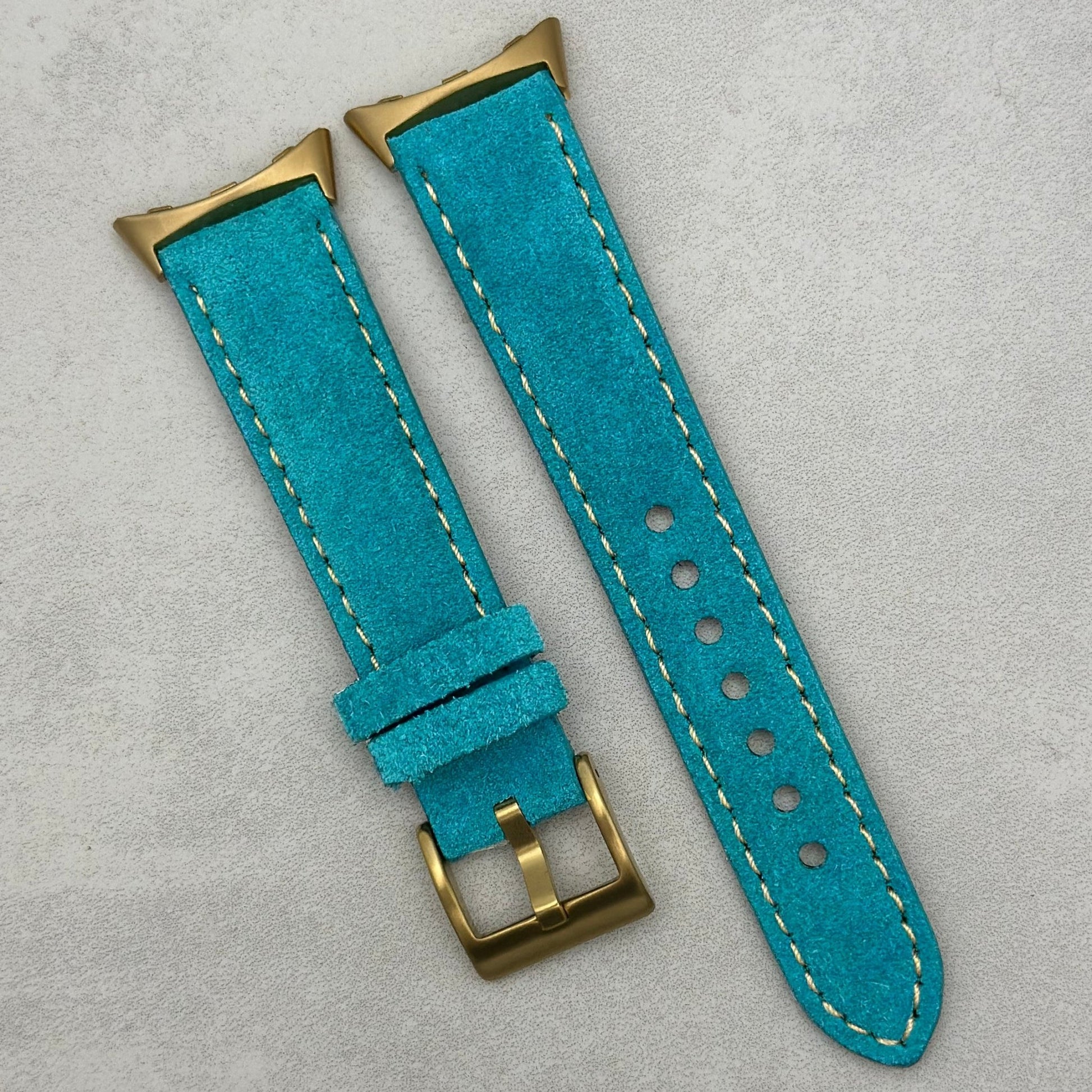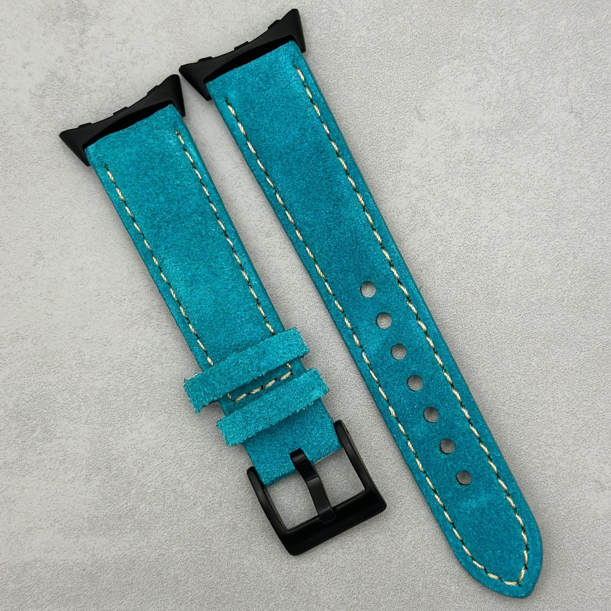 The Paris: Turquoise Blue Padded Suede Google Pixel Watch Strap