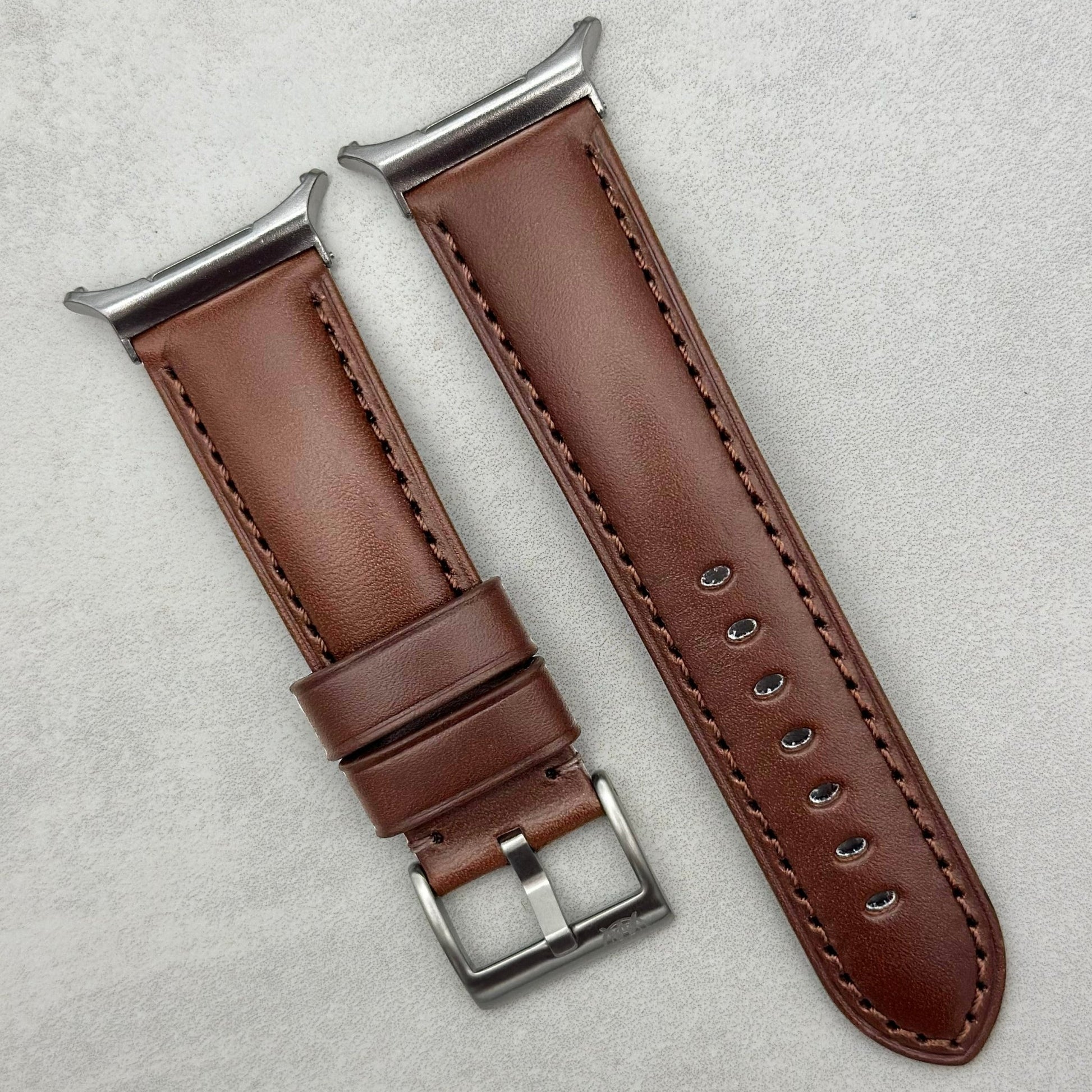 The Prague: Chestnut Brown Vegetable Tanned Full Grain Leather Samsung Galaxy Watch Ultra Strap