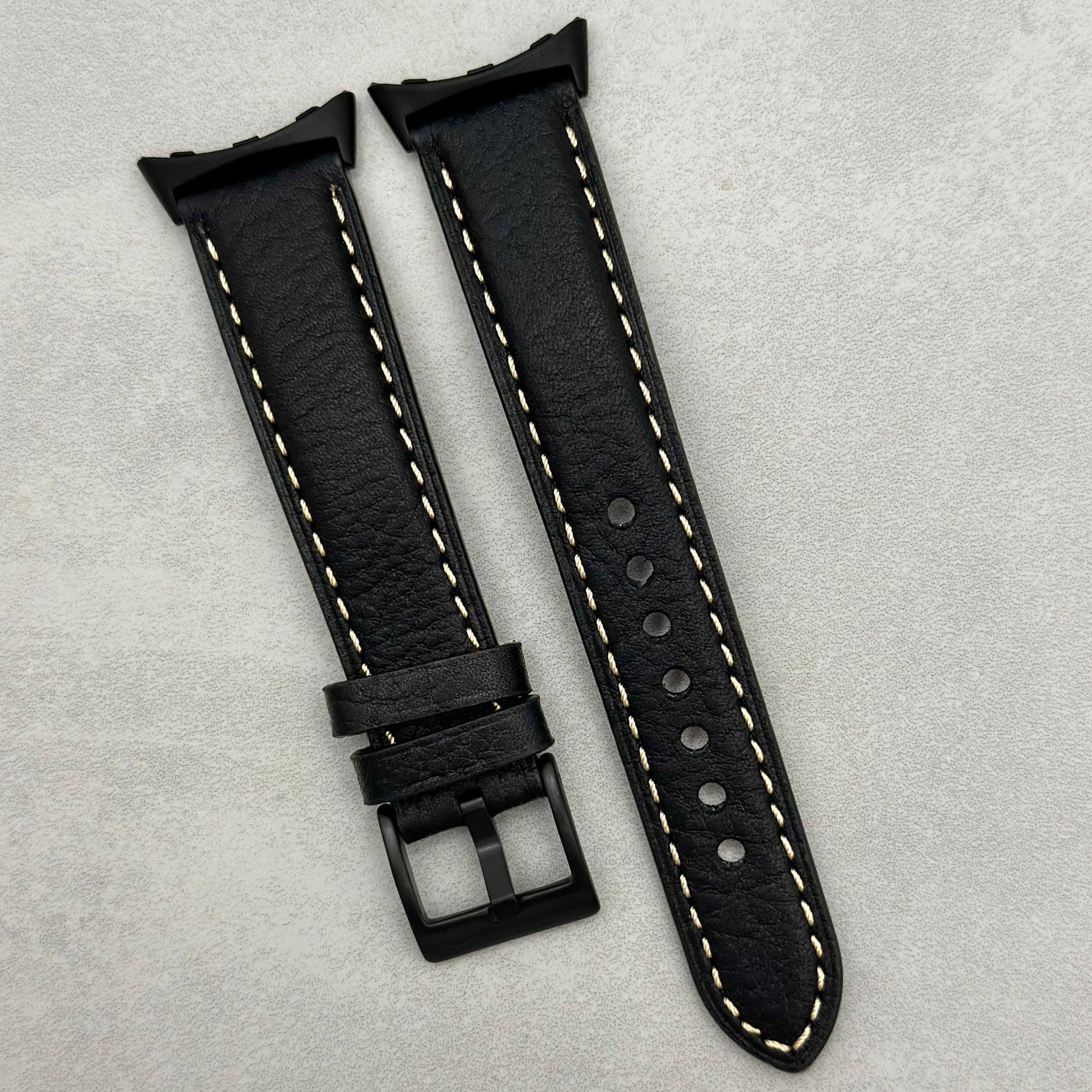 The Rome: Jet Black Italian Full Grain Leather Google Pixel Watch Strap