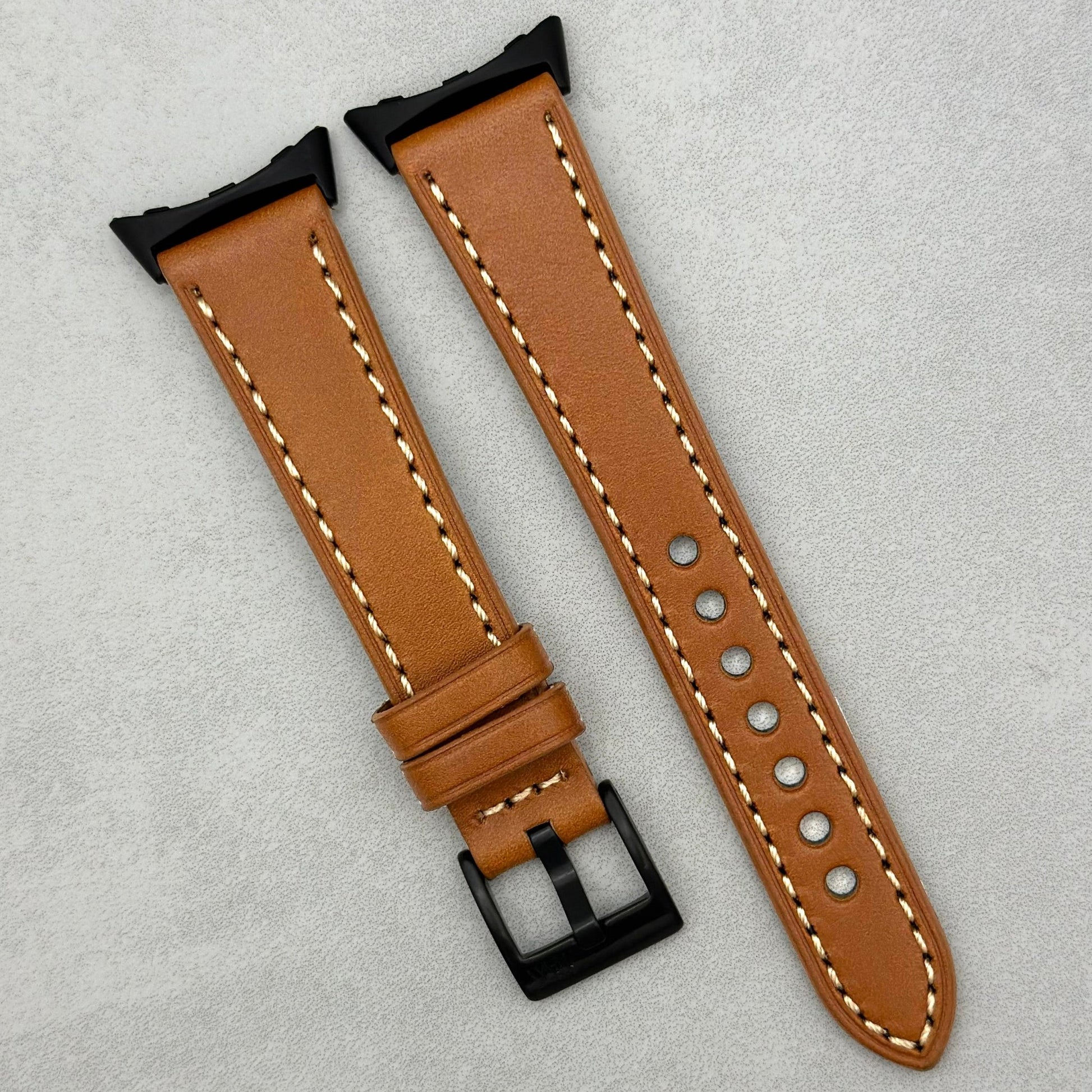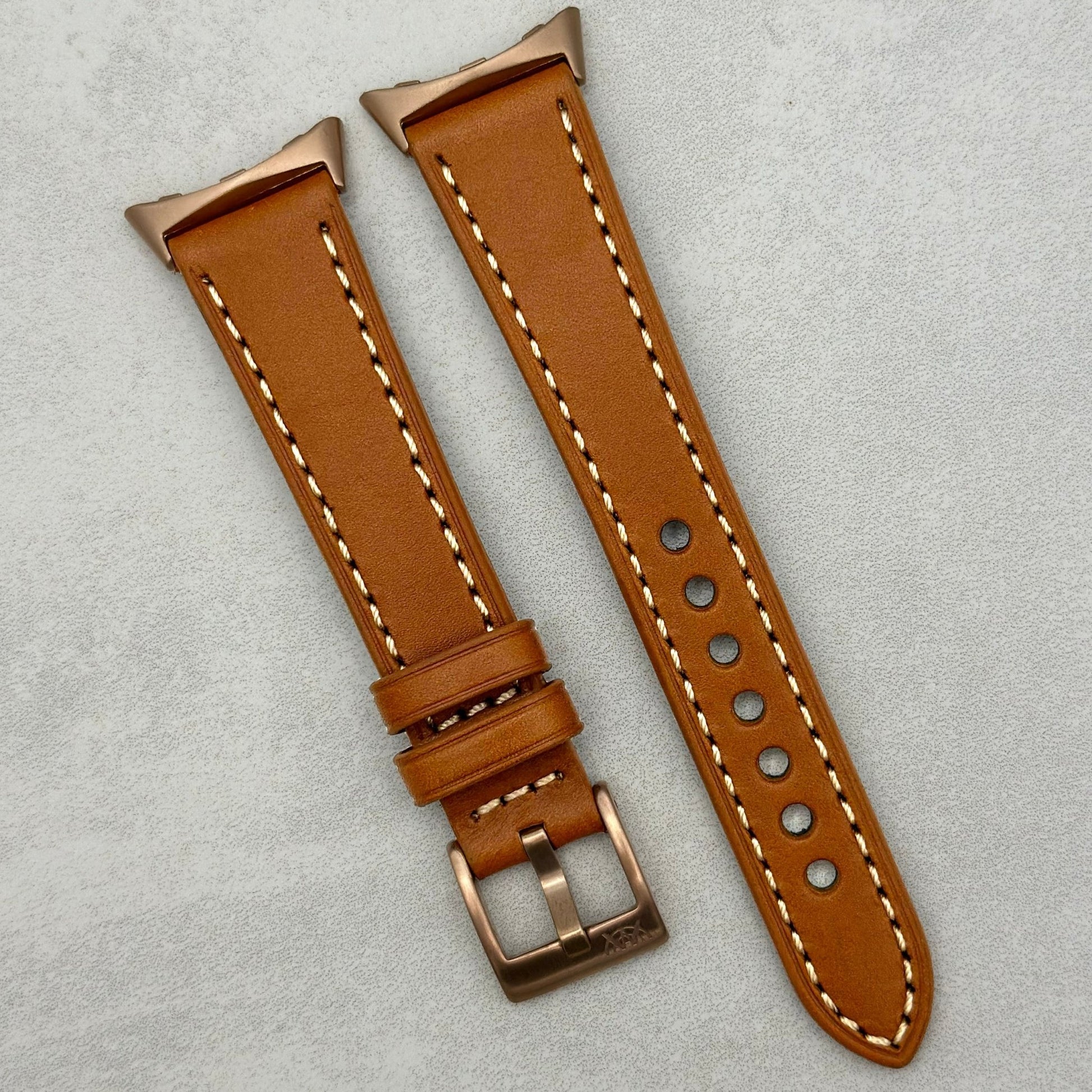 The Venice: Caramel Tan Italian Vegetable Tanned Leather Google Pixel Watch Strap